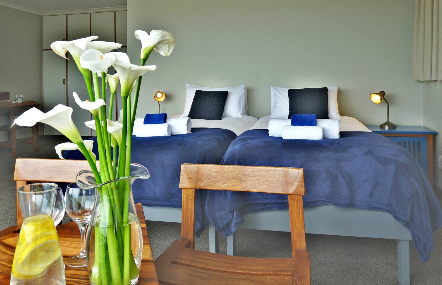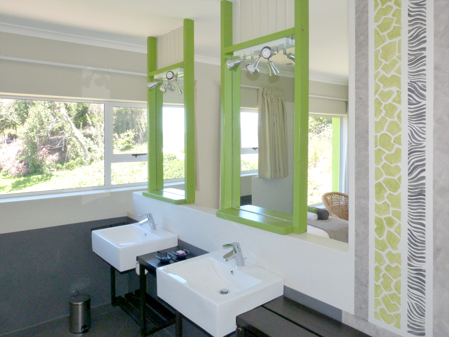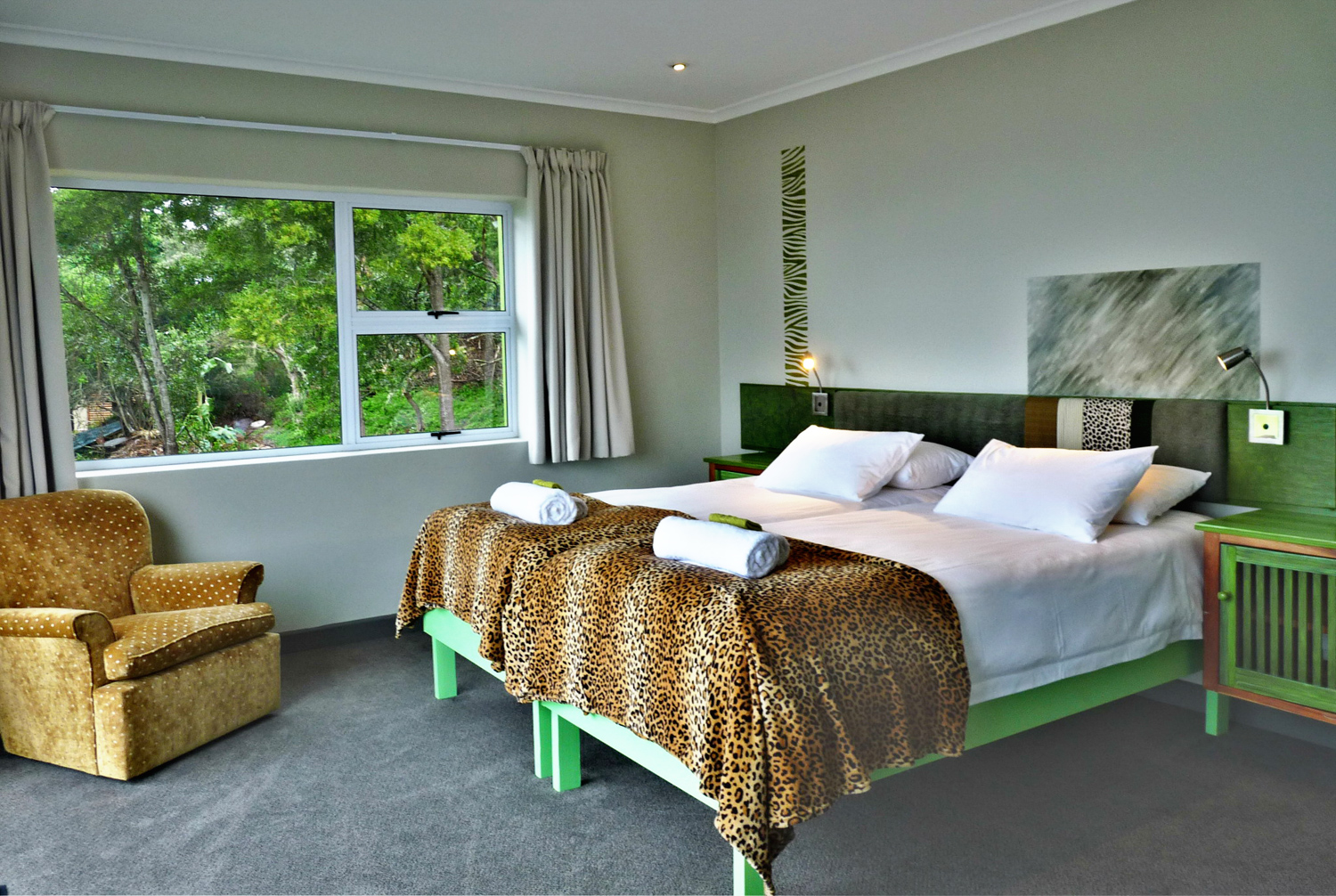 Die Besonderheit des Knysnaviews Guesthouses zeigt sich in seinem einzigartigen Gemisch aus gemütlichen, europäischen und afrikanischen Ambiente. Die 4 Superior Zimmer mit großer privater Terrasse und spektakulären Ausblick, gehobener Badausstattung, sind stilvoll eingerichtet und verfügen über kostenfreies Wi-Fi, digitale TV Kanäle, DVD player, Tee/Kaffestation, Wäscheservice, Safe, Haarfön.